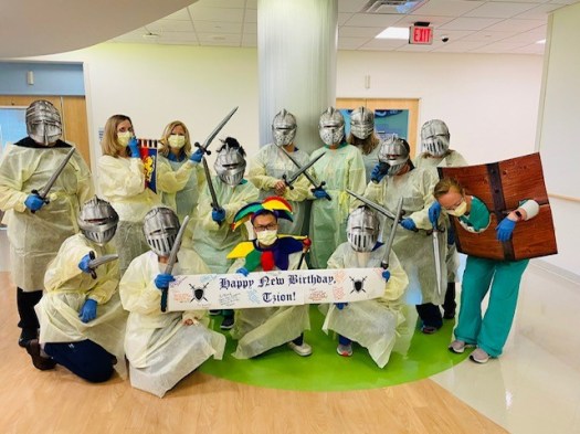 Tzion’s parents said, “That day I checked him out of school, he knew he was going in to the hospital the next day, so we decided to go to his friends house where Tzion played basketball, we cried, ate pizza and ice cream. His words going in the hospital the next day, “ Let’s do this!” Tzion spent a month in PICU on continuous dialysis. On June 5, 2020, Tzion had a Bone Marrow Transplant and his sister Cayleigh was his donor! Although we have had many scares, he is still recovering with hiccups along the way, but he is determined and knows that March 2021 he will be practicing football again!
