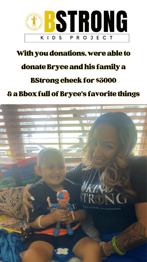 💛Through our program, we were able to donate a BStrong check of $3,000 for the family and a BBox full of Brynley’s favorite things.