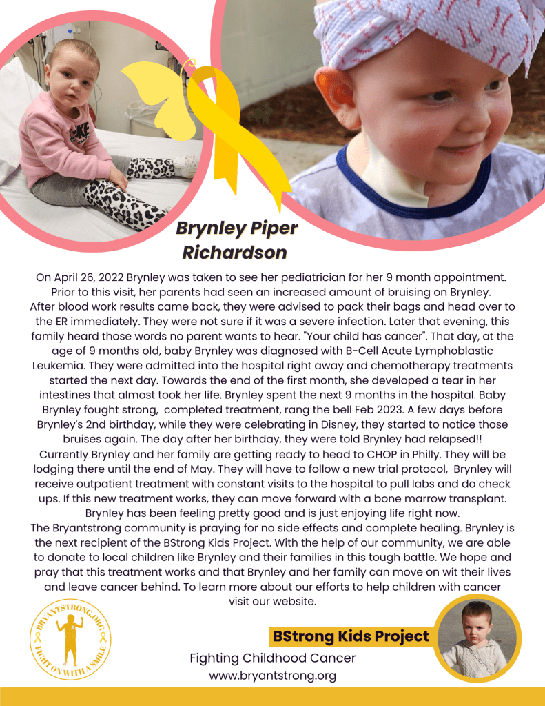 #BryantstrongFoundation #FightingChildhoodCancer #HelpingKidsBattlingCancer #FightOnWithASmile #TogetherWeAreStronger #NoOneFightsAlone